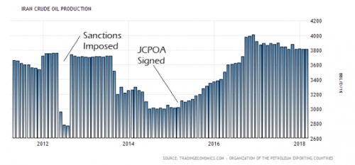 It is more than obvious that the unilateral annulment of the JCPOA, the Israeli hostile actions in Syria, or even the new American embassy in Jerusalem have to do with oil. Saudi Arabia wants Iran back to less than 3 million barrels a day to support higher prices, while Israel and the U.S. want to starve the Iranian government of money, so pulling out of the deal will allow the U.S. to re-impose sanctions on Iran, cutting it out of the global banking system again. But Iran being back to pre-2012 production levels and removing the U.S. dollarfrom its oil trade, officially means that China has a different partner to buy its oil from and that supports the fledgling petroyuan system developing in Shanghai financial markets.